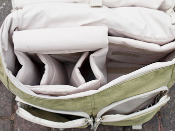 Opening the camera compartment there are two dividers in there which can be moved to various positions via velcro strips. It has to be said that these divides are not very substantial, unlike the ones that were in the NGEE small bag.