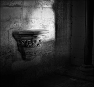 Taken with an Olympus E-410 at 400 ISO in Lincoln cathedral. This was in one of the side chapels of the cathedral. It was very quiet and very peaceful with just that one ray of light from a high window breaking the gloom. The shadows were deepest in the corner by the pillar, but they got progressively less dense as they were opened by the shaft of light. The light itself was quite gentle, not harsh or blinding and I wanted to show that in the image as well as the receding shadows. Control of the light and the denseness of the shadows was the objective in this image.