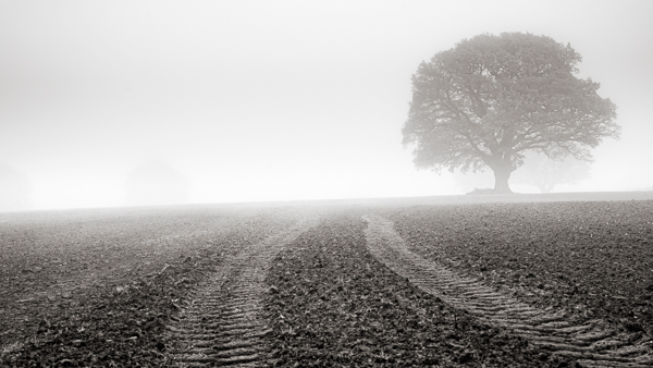 The first is a landscape which shows tractor tracks disappearing into the mist across the field. I got down low with the camera and ensured that one of the tracks is coming from a bottom corner of the frame. Once again there was such a magical light through the mist that the photograph almost took itself.