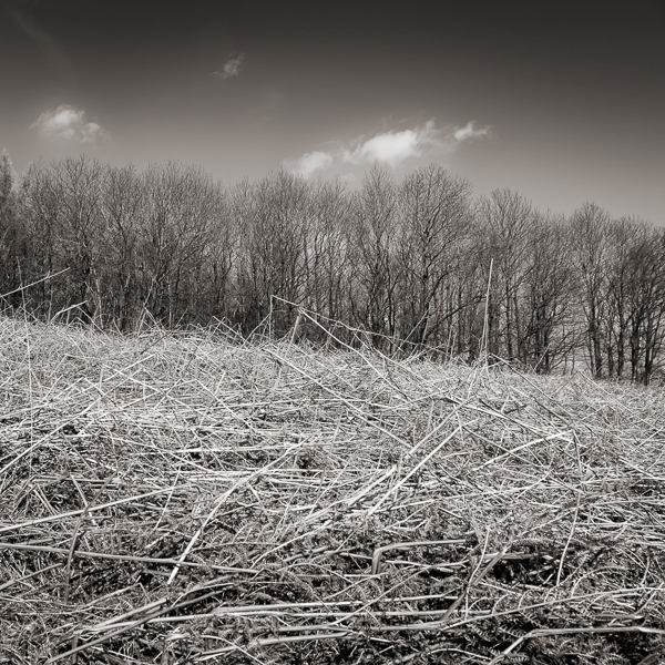 The first image was taken because I really liked the way that the scene was split into three distinct areas, the sky, the trees and the ground. Each had different textures and the diagonal movement down to the right helped provide another piece of visual interest. The aperture was set at f/10 to try and get as much in focus from front to back.