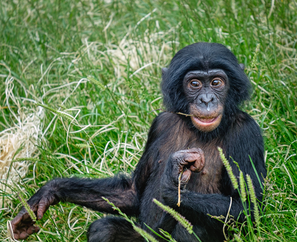 This next photograph is of a mischevious young chimp who seemed to delight in annoying other members of his troop. What I think is really good about this image is that it was taken through grimy plate-glass into the chimpanzee enclosure. I pressed the lens hard up to the glass to take the picture.