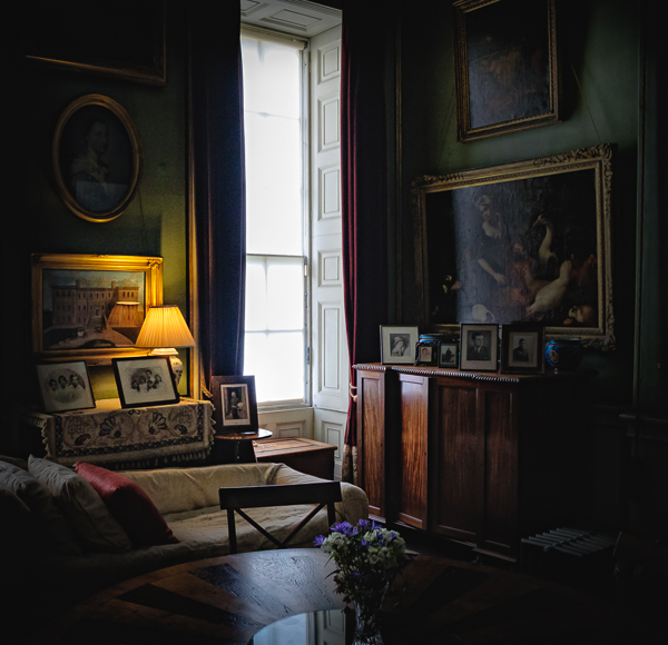 This shot was obviously taken in the house itself in one of the rooms that the old lord had lived in whilst closing off most of the other parts of the house. There was something a little sad and faded about the feeling in this room. I wasn’t bothered about losing detail out of the window in this, I was more concerned in getting the tungsten light from the lamp and the daylight from the window to balance a little.