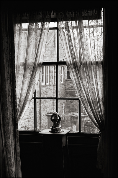 I love the way light falls through windows and decorates the objects that lie within a room. There is a multitude of tones that are formed by this light and it gently coats the objects and ornaments that decorate a room. This was the case with this image, the light is softened by the voiles at the side of the window whilst the centre of the window lets the full light in and outlined the strange little statue on the table.